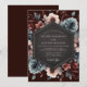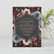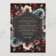 Evoke a sense of dramatic romance with this opulent floral design. A stunning palette of deep maroon, dusty slate blue, and soft blush creates a rich, painterly effect against a dark background. Lush anemones and chrysanthemums cascade in an elegant arrangement, perfect for a moody, artistic union.