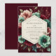 Evoke a sense of opulent romance with this dramatic and moody design. A lush bouquet of vibrant teal and soft blush peonies bursts forth from a rich maroon backdrop, creating a stunning visual contrast. The artistic, painterly style brings a touch of timeless elegance to your nuptial stationery, perfect for a sophisticated affair.