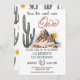 Vintage Brown How The West was One Birthday Invitation Cute boy, una invitación al primer cumpleaños con temática occidental, con un paisaje de cactus en el desierto, estilo de cuerda, palabra uno, y herradura dibujada a mano. Esta invitación de primer cumpleaños de este salvaje niño del oeste es ideal para una fiesta de primer cumpleaños con temática occidental. El mismo diseño también está disponible con el encabezado de la cuerda de color naranja.
