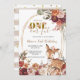 Invitación Marsala Floral One Deer Ful Chica Primer cumpleaño