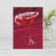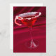 Copa de martini con borde de bastones de caramelo triturados llena de cóctel rojo sobre rojo.