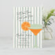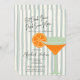 Moda martini sobre fondo rayado verde. Este elegante diseño cuenta con un sofisticado ilustracion de cristal de Martini, que añade un toque de lujo a sus invitaciones para eventos. Impresiona a tus huéspedes con esta moda y esta ducha de novias intemporal, marcando el tono para una celebración glamurosa.