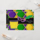 Colores tradicionales del Mardi Gras de verde, morado y dorado con bebida festiva y agitador de máscara de plumas. Esta divertida y colorida invitación de fiesta de Mardi Gras está completa con Fleur De Lis en la parte posterior y se personaliza fácilmente para su fiesta o evento simplemente eligiendo el botón naranja "¡Personalízalo!" para comenzar a agregar los detalles de su evento, estilo de fuente, tamaño y color de la fuente y redacción. Tenga en cuenta que todos los adornos para pasteles, tarjetas y diseños de invitaciones que encontrará en Zazzle son gráficos impresos sin joyas reales, lazos, partes o piezas en relieve, repujados o agregados.