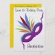 Máscara de fiesta púrpura con plumas coloridas lista para alguna fiesta de cumpleaños Sweet 16, personalizable para cualquier ocasión. Fiesta de disfraz o diversión de Mardi Gras. Hermosa máscara púrpura con plumas coloridas en verde, dorado, azul y rojo con aspecto de brillo y plumas azules en la parte superior de la máscara. La parte posterior tiene un fondo de color dorado con texto en púrpura y verde. Diseño de arte original de TamiraZDesigns.