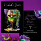 Una invitación perfecta para una fiesta única: el tema del Mardi Gras y los colores de la fiesta festiva New Orleans Mardi Gras favorecen el oro verde y el violeta, los colores tradicionales del carnaval del Martes de Grasa. Invitación perfecta para los fiestas temáticos de NOLA. El diseño purpurina de Wavy.