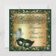 Máscara de Mascarada Dorada y Verde Invitaciones de Fiesta de Cumpleaños. Artículos coincidentes disponibles.