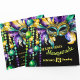 Personalizar tanto en la parte delantera como en la parte trasera de esta invitación a la fiesta de la Mascarada del Marid Gras, el frente cuenta con una vibrante máscara de baile de máscaras que combina las cuentas del Mardi Gras en el fondo. El reverso de la tarjeta incluye la máscara de Mardi Gras y las perlas y deja espacio para la personalización de la información de su fiesta. Cambie el tipo de letra, el estilo y el color del tipo de letra para que coincidan con el color del fiesta. ¡Disfruta tus festividades!
