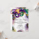 Celebre con estilo con esta elegante y moderna invitación de acuarela que presenta una máscara de plumas de pavo real coloridas adornadas con cuentas doradas, moradas y festivas. Perfecta para una fiesta de disfraces de Mardi Gras, celebración de cumpleaños o incluso eventos de orgullo gay, este diseño captura el espíritu vibrante de Mardi Gras con su encanto de máscara de disfraz y su lujo. Establezca el tono para un evento inolvidable con esta impresionante invitación que es tan festiva como su celebración.