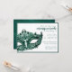 Invitación Máscara Verde | Boda de Mardi Gras Esmeralda Oscur