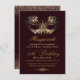 La moderna invitación burdeos y dorados Template es perfecta para una elegante fiesta de cumpleaños número 50. El ambiente elegante y minimalista del hotel está lleno de elementos de diseño divertidos y modernos, caligrafía elegante y fuentes modernas. Los cumpleaños son días especiales, y esta invitación puede ayudar a que sea memorable para los amigos.