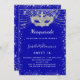 Para una elegante Mascarada, dulce 16, 16 cumpleaños. Un fondo azul real. Decorado con un polvo falso purpurina plateado y una máscara de mascarada. Personalice y agregue un nombre, edad y detalles del fiesta. El nombre se escribe con un guión de estilo con letras a mano