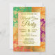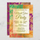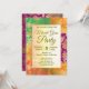 Invite a sus huéspedes al Mardi Gras con estilo con esta invitación de tarjeta plana de moda. La plantilla de diseño incluye máscaras de máscaras doradas sobre un fondo de color morado, naranja y verde. En el centro están todos los detalles de tu fiesta a personalizar. La parte de atrás de la carta son máscaras de oro sobre morado. Diseñado por la artista de renombre mundial ©Tim Coffey.