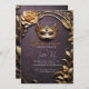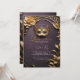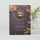 Haga de su Quinceañera un verdadero encanto con esta elegante invitación con temática de mascarada. El diseño muestra una lujosa paleta real morada y dorada, que recuerda a una mágica bola de máscaras. El follaje de oro falso en 3D añade un toque de glamour a tu celebración.