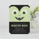 Invite a los huéspedes a su fiesta de Halloween con estas elegantes invitaciones de Monster Mash que incluyen un adorable vampiro personalizado en la parte delantera y rayas blancas y negras en la parte trasera. Perfecto para fiestas de Halloween tanto para niños como para adultos, este diseño festivo combina elementos bonitos y espeluznantes para un divertido toque estacional. Personalice los detalles de su fiesta para una celebración memorable que encantará a los huéspedes de todas las edades.