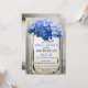 Invitación Mason Jar Barn Wood Blue Hydrangeas Británica Duch