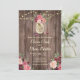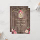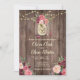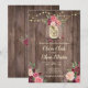 Una bella invitación casera rústica con rosas color agua rosa, un frasco de albañilería y luces de cuerda sobre un cálido fondo de madera de época. La carta vuelve a un pequeño ramo de flores en el centro. Puede personalizar de la fuente de cualquier manera que desee o agregar su propio mensaje especial. Esta invitación forma parte de una hermosa suite boda que puede ser totalmente personalizada.