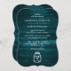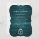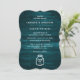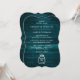 Invitación rústica a la boda verde azulada con un frasco de albañil sobre un fondo rústico de madera. Personalice fácilmente esta rústica invitación verde azulada a la boda para complementar su rústico y verde azulado país, o la fiesta de bodas.