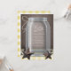 Rústicas y hermosas invitaciones a la ducha de bebé de campo sureño con un ilustracion de un frasco de albañilería con tortuga atada alrededor del cuello, estrellas rústicas de Texas tendidas al pie del frasco, una mesa de gingham blanca y amarilla, sobre un fondo marrón vintage.