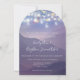 Bajo las estrellas, garland y estrellas brillantes con frascos románticos de mason rústico y una lavanda violeta pastel de fondo de la montaña invitaciones a la boda