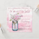 Invitación a la boda en el jardín - Frasco de masón azul vintage, atado con un tubérculo de yute y un ramo de flores de guisantes dulces en tonos pastel de crema y rosa, colocado frente a un fondo de color de agua rosa. © 2015 Pintura original de acuarela de WhimsicalArtwork™ Perfecto para la boda o el fiesta vintage de ese país.