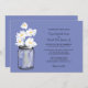 Perfecto para un boda de estilo rústico o tal vez te guste Mason Jars! El viejo mason Jar, vintage, se llenó de margaritas blancas en un fondo morado. Si tiene alguna pregunta sobre este diseño o desea un cambio de color, por favor envíeme un correo electrónico a paula@labellarue.com También compruebe que las tarjetas RSVP, RECEPTION y GUEST SEATING se correspondan!