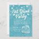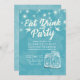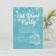 Bebida y Fiesta / Tómese una bebida y se case con Boda Celebración / Plantillas de tarjetas de invitación para duchas nupciales.- Elegante escritura de letras y frascos de mason de pareja vintage y luces de cadena sobre fondo floral azul claro. Un diseño perfecto para tu gran día. ¡Todo el estilo de texto, colores, tamaños se pueden modificar para adaptarlo a sus necesidades!