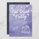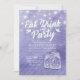 Bebida y Fiesta / Tómese una bebida y se case con Boda Celebración / Plantillas de tarjetas de invitación para duchas de novias - Elegante guión de letras y frascos de mason de parejas de vintage y luces de cadena sobre fondo violeta morado. Un diseño perfecto para tu gran día. ¡Todo el estilo de texto, colores, tamaños se pueden modificar para adaptarlo a sus necesidades!