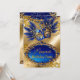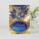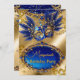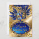 Invitación Masquerade birthday Party Gold Blue Mask Feathers