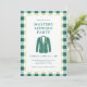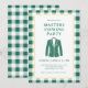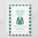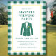 Una invitación refinada para una fiesta de visualización de Masters inspirada en el estilo atemporal del torneo más icónico del golf. Este diseño presenta un fondo blanco crujiente enmarcado con un borde de verificación verde clásico y una delgada línea de acento amarillo que hace un sutil gesto a la tradición de la chaqueta verde. El motivo de la chaqueta ilustrada y la tipografía elegante crean un diseño limpio y equilibrado que se siente clásico y moderno. El reverso continúa el diseño con un patrón de verificación verde coordinado que agrega interés visual mientras mantiene el aspecto general pulido y discreto. Ideal para organizar una fiesta de observación de Masters, una reunión de un club de golf o una celebración de golf de primavera, esta invitación se puede personalizar con los detalles de su evento, ubicación e información de RSVP para una forma atenta y elegante de invitar a otros fanáticos del golf.