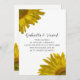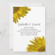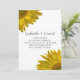 Anuncie su verano privado o su matrimonio en otoño o su fusilamiento secreto con la Invitación Boda del girasol amarillo bonito. Esta sencilla y elegante invitación de elementos botánicos personalizados presenta una fotografía floral realzada digitalmente de una flor de girasol amarilla que adorna las esquinas con un fondo blanco.