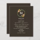 Invitación a una boda en monograma otoño o otoño con un ilustracion de flores y vegetación dispuestos en círculo en la parte superior. Personalice con su círculo interno inicial. Personalice el texto con detalles de su ocasión. La palabra es de novia y novio.