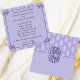 Una elegante invitación a la boda personalizada en azul/violeta, parte del juego de papelería boda "Violet Blue Damask" con un diseño de damasco blanco y azul lavanda con adornos decorativos azules.