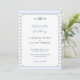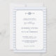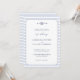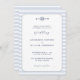 Una elegante y moderna invitación a la boda clásica de temática náutica, con un sencillo rectángulo redondeado sobre un fondo azul polvoriento de rayas náuticas, y un sencillo ilustracion de nudo de infinito acuático con un diseño de cuerda. También presenta los monogramas de la pareja y elegantes acentos caligráficos. Puedes personalizar completamente esta invitación a la boda. Una buena elección para un boda de barco, un boda de yates, un boda del océano, un boda de playa, un boda a orillas del mar o una boda en la playa, para una pareja que ama el océano, el mar, la playa, la vela, etc. en verano y más allá.