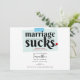 ¡El matrimonio apesta! Celebra tu libertad con este audaz Fiesta sarcástico de Invitación de Divorcio: Matrimonio es gracioso. El diseño presenta un diseño minimalista divertido y audaz con tipografía en blanco y negro.