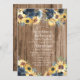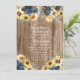 Esta bonita invitación a la boda de girasoles amarillos rústicos de madera hará las delicias de los huéspedes.