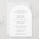 Elegante invitación de boda con un diseño sencillo y tradicional con los detalles de tu evento en fuentes serif.