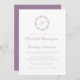Este elegante diseño de invitación a la boda presenta un monograma de escritura malva rodeado inicialmente por una corona botánica de arte de línea sobre un fondo blanco. Los nombres aparecen en el guión malva, con el resto del texto en el tipo de letra serif clásico. La parte posterior de la tarjeta es malva sólida.