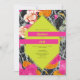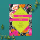 Forma geométrica de 6 lados de color amarillo neón sobre naranja rosa y melocotón floral moderna con diseño marbleizado oscuro. Los nombres son de neón amarillo en las barras rosadas calientes.
