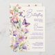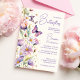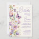 Me da mariposas encantadas jardín primavera verano ducha de novias invitación plantilla editable descarga digital instantánea, lavanda de lila pastel jardín morado flores primavera y mariposas invitaciones para ducha de novia con tema mariposa