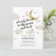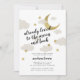 Esta encantadora y moderna ducha de bebé ofrece nuestro ilustracion de nubes dibujadas a mano con falsos Relieves metalizados dorados y una luna. Perfecto para duchas de bebé, exámenes de género o cumpleaños.
