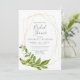 Una elegante y moderna ducha botánica con una hermosa pieza central geométrica de oro rodeada de exuberantes hojas de acuarela. El color de fondo como se muestra es blanco, pero puede seleccionar un color personalizado para que coincida con el tema boda.