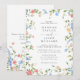 This elegant floral wedding invitation features a delicate watercolor botanical border with soft pink, blue, and peach blooms that frame your wedding details with timeless charm. The romantic garden-inspired design and classic typography make it perfect for spring weddings, summer ceremonies, outdoor celebrations, and botanical or rustic wedding themes. The clean, airy layout keeps your event details easy to read while maintaining a sophisticated look. A convenient QR code RSVP is printed on the back, allowing guests to quickly respond online for a modern, seamless experience. Printed on your choice of cardstock, this floral wedding invitation combines classic elegance with contemporary convenience, creating a beautiful first impression for your special day.