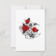 Contorno, luna de media luna mecánica con engranajes, decorada con rosas rojas con tallo negro y hojas sobre fondo blanco. Steampunk
