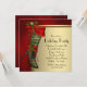 Elegantes invitaciones de fiesta de Navidad con botas rojas de tacón alto. Esta divertida y moderna invitación de fiesta de Navidad con medias rojas y doradas de tacón alto se personaliza fácilmente para su evento simplemente agregando los detalles del evento, el estilo de letra, el tamaño y color de la letra, y la redacción. Tenga en cuenta que todos los diseños de tarjetas e invitaciones que encontrará en Zazzle son gráficos impresos sin joyas reales, lazos, partes o piezas en relieve, estampadas o agregadas.