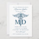Símbolo médico de MD y caduceus, colores y iniciales editables. Funciona como una invitación a una fiesta de graduación o como una invitación de graduación. La foto de atrás es opcional