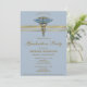 Invitación Medical Blue Caduceus Gold Stripe Graduation Photo
