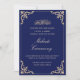 Invitación a la Ceremonia del Mehndi Azul del Oro. Fondo azul marino con un diseño de estilo antiguo. Hecho para una novia y un novio musulmanes para celebrar a su boda a la manera islámica. Puede editar toda la información escrita en la parte delantera de la tarjeta. En la tarjeta adicional, también puede agregar texto. Sobre blanco en blanco incluido.