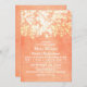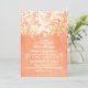 Invitación melocotón con luces de cuerda y boda rústico dorad