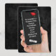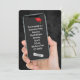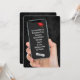 Una mano sostiene un smartphone con un diploma de graduación de 2025 sobre un fondo de cuero negro para una fiesta de graduación. Todo el texto es editable. Se puede eliminar el diploma y el tapón de grado.