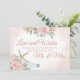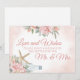 Boda de playa "Amor y deseos para el Sr. y la Sra." Deje un mensaje en la botella para el Sr. y la Sra. letrero de boda de playa floral. Flores rosadas y coral blush con estrella de mar y dólar de arena, letrero de boda de destino de playa. Texto editable.